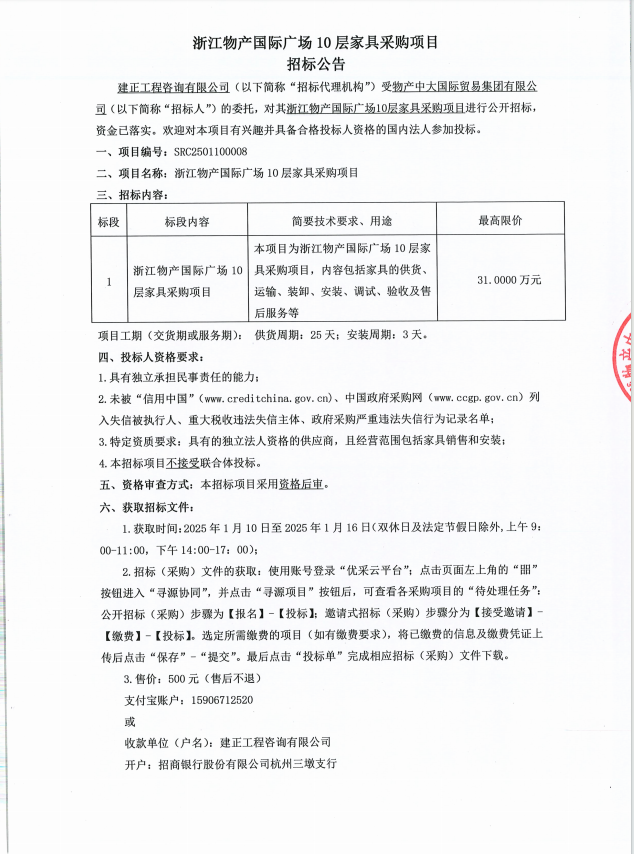 浙江凯发一触即发国际广场10层家具采购项目招标通告