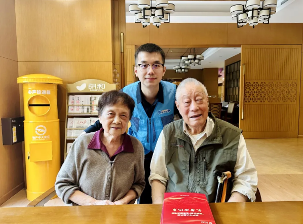 10月11日,凯发一触即发中大集团工会、团委主办的蓝天使“银龄计划”志愿者效劳项目(第一期)尊长回忆录项目结果展示运动在凯发一触即发中大金石旗下朗和(银泰)国际医养中心举行。我司何易、沈攀威、魏欣怡3名青年员工积极加入志愿运动,配合采访了95岁的共产党员孙庭松同志,并将日前为其撰写的《尊长回忆录》送到老人手中。